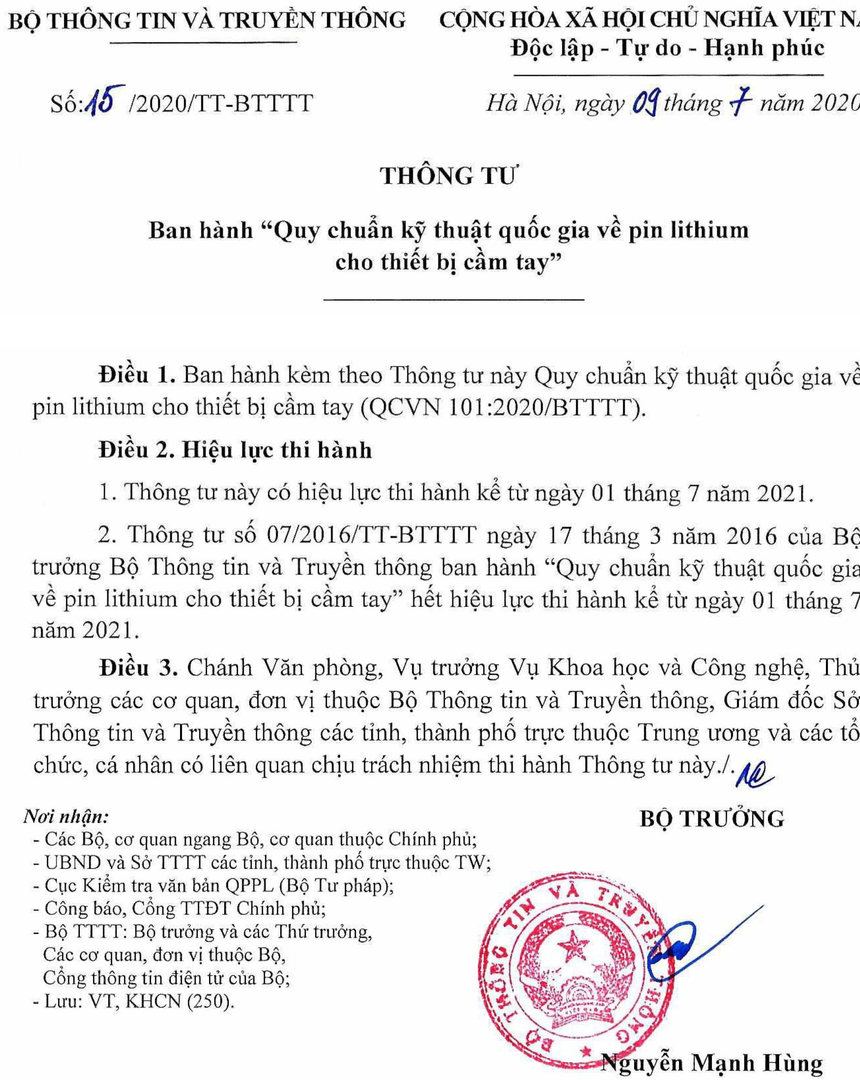 越南MIC於2020年7月9日發布公文,內文提到手機、平板、筆電用的鋰電池將升版至新標準QCVN 101:2020/BTTTT。